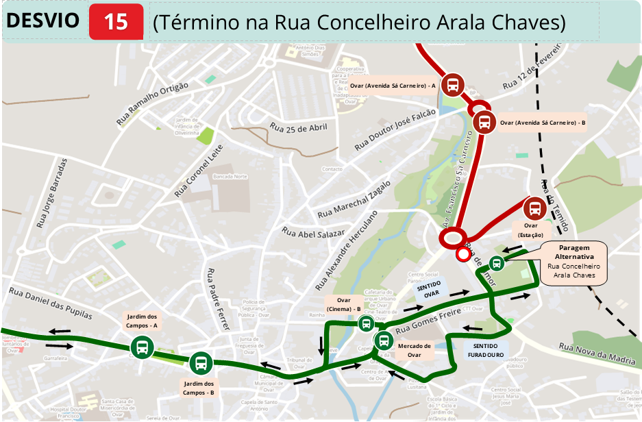 Nos dias 15 de fevereiro de 2026 (domingo) e 17 de fevereiro de 2026 (3ª feira), logo que a sinalização indique, devido à realização do Carnaval de Ovar 2026, a linha 15 têm o seu percurso afetado no centro da cidade de Ovar.